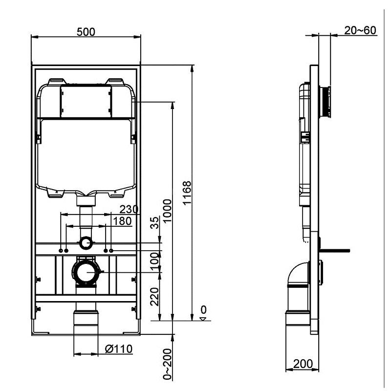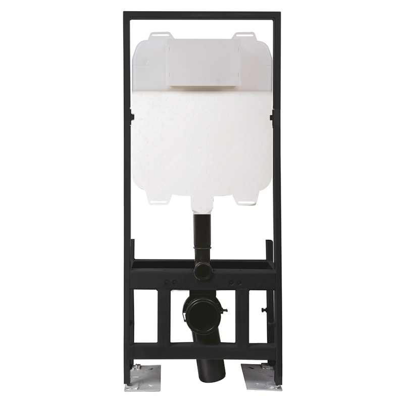 Pneumatisch dubbelspoelbaar inbouwreservoir met instelbare volumes (3/4,5L, 3/6L, 4/7L), EN14055-gecertificeerd. Voorzien van een bedieningspaneel met twee knoppen (optioneel CJ501/502/503-ventielen) en een onderhoudsafsluitklep. Blaasgegoten HDPE-tank met EPS-isolatie, epoxygecoat stalen frame (40°).
