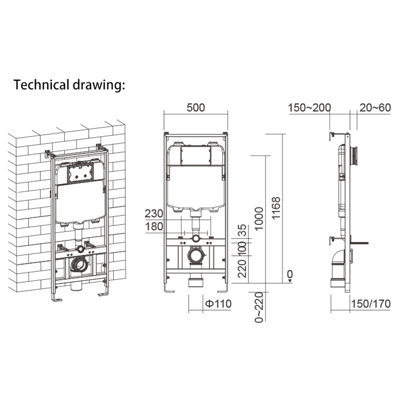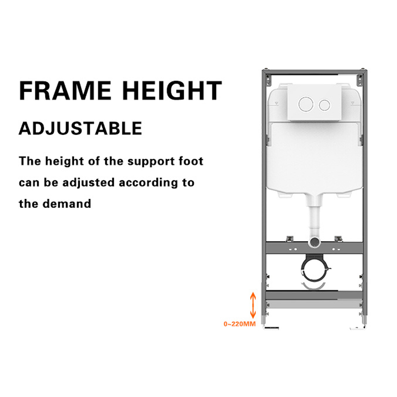 17.3Dikte van het reservoir 90 mm, weggewerkt in de muur, met universeel frame voor wandtoilet met dubbele spoelfunctie.
