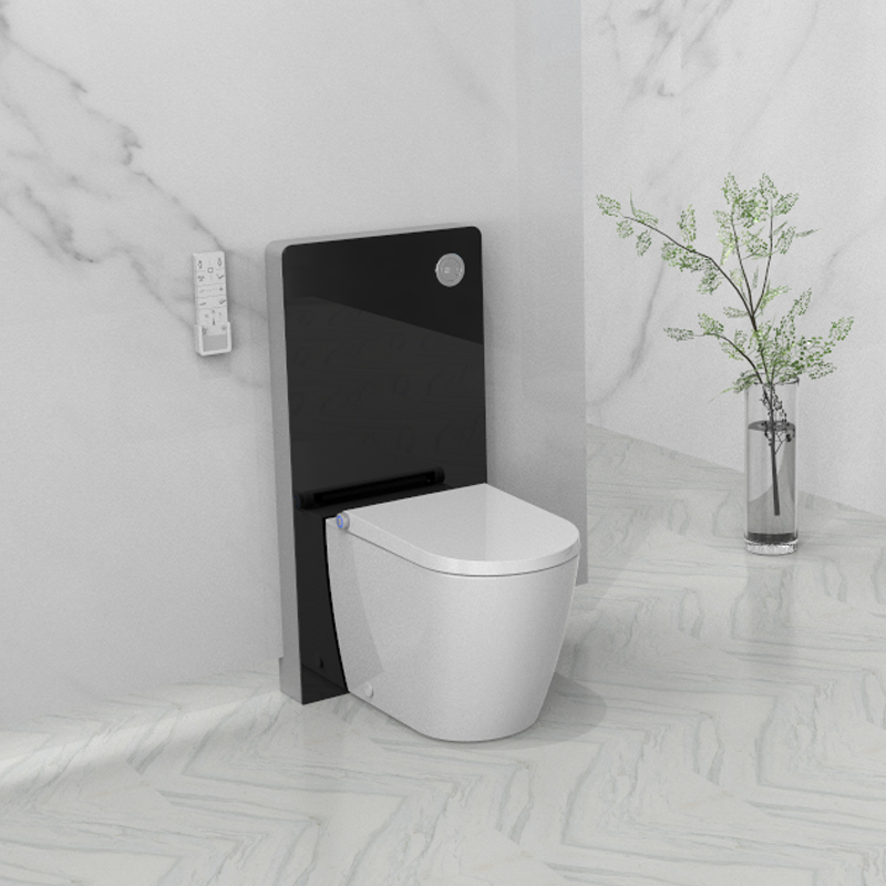 Luxe glazen kast met spoelbak met aluminium frame, geschikt voor hangtoilet; Capcitieve automatische spoeling, dubbele spoeling van 3/6 liter; Superslank geïntegreerd E-bidet: wassen, masseren, drogen, ontgeuren, airfresh, LED-licht, verstelbaar mondstuk, met afstandsbediening.